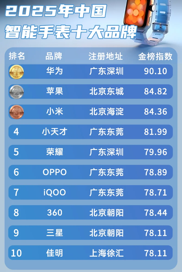 经过对市场占有率、技术创新、用户口碑及未来潜力的综合评估,2025年中国智能手表十大品牌榜单如下(排名不分先后,各具特色):