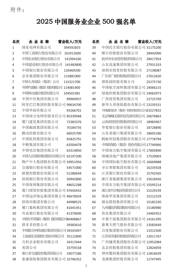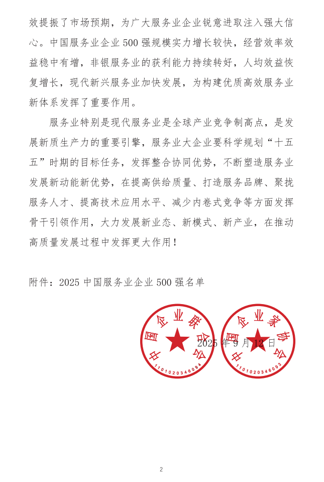 “2025中国服务业企业500强”发布 平均营收规模首破千亿元